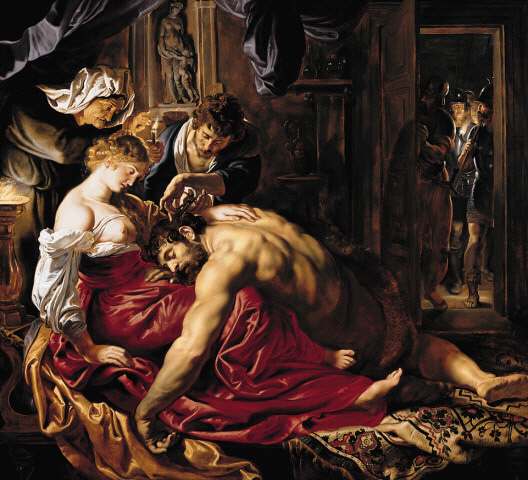 Samson en Delila. Dit werk schilderde Rubens na zijn reis door Italië. Kunstkenners zien de invloed van onder andere Tintoretto in het schilderij. Het onderwerp is smeulend en dreigend door het verraad gepleegd door Samson's grote liefde en de Filistijnen die in het donker het juiste moment afwachten om Samson te vangen.